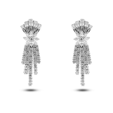 Estos magníficos aretes en oro amarillo de 18k combinan la majestuosidad de las esmeraldas corte esmeralda, con un peso total de 0.5 ct, con el brillo cautivador de un halo de diamantes de 0.19 ct.
