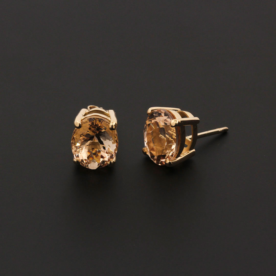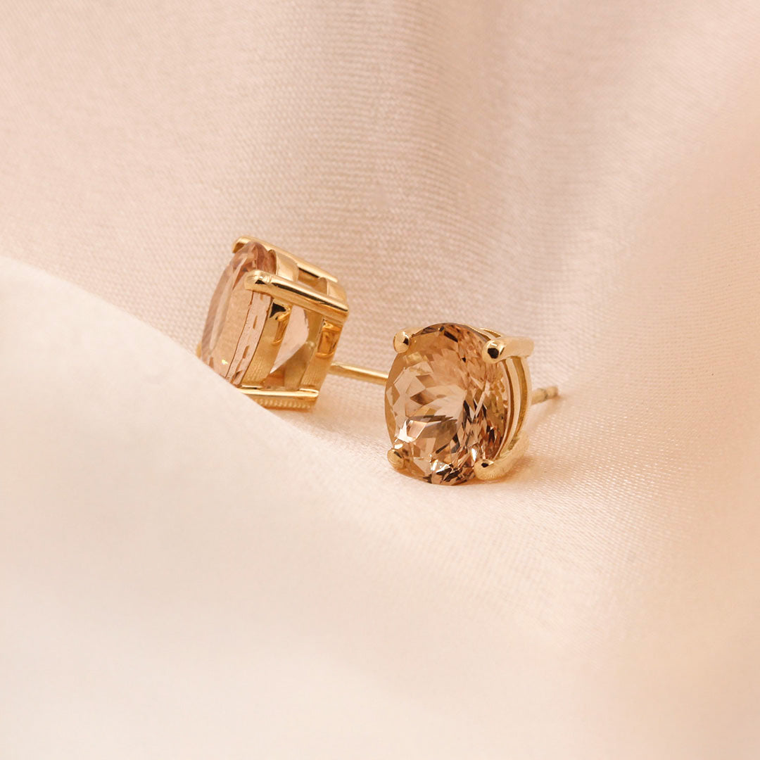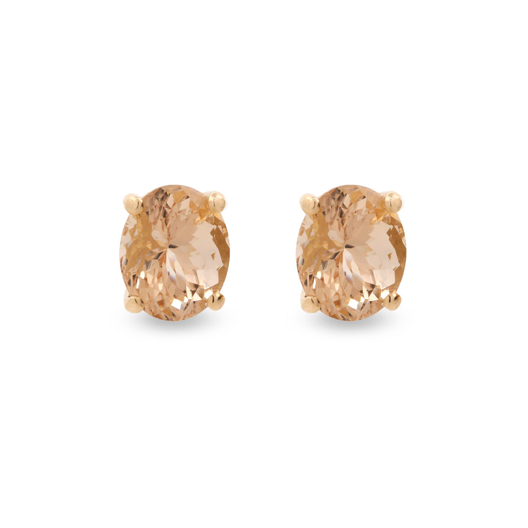 Estos aretes presentan morganitas finas de 7.11 ct, talladas en un corte oval de alta precisión que maximiza el brillo interno característico de esta gema. Su tono rosa melocotón —suave, dorado y envolvente— refleja a la perfección la luz cálida del atardecer que inspira la colección Bahía.