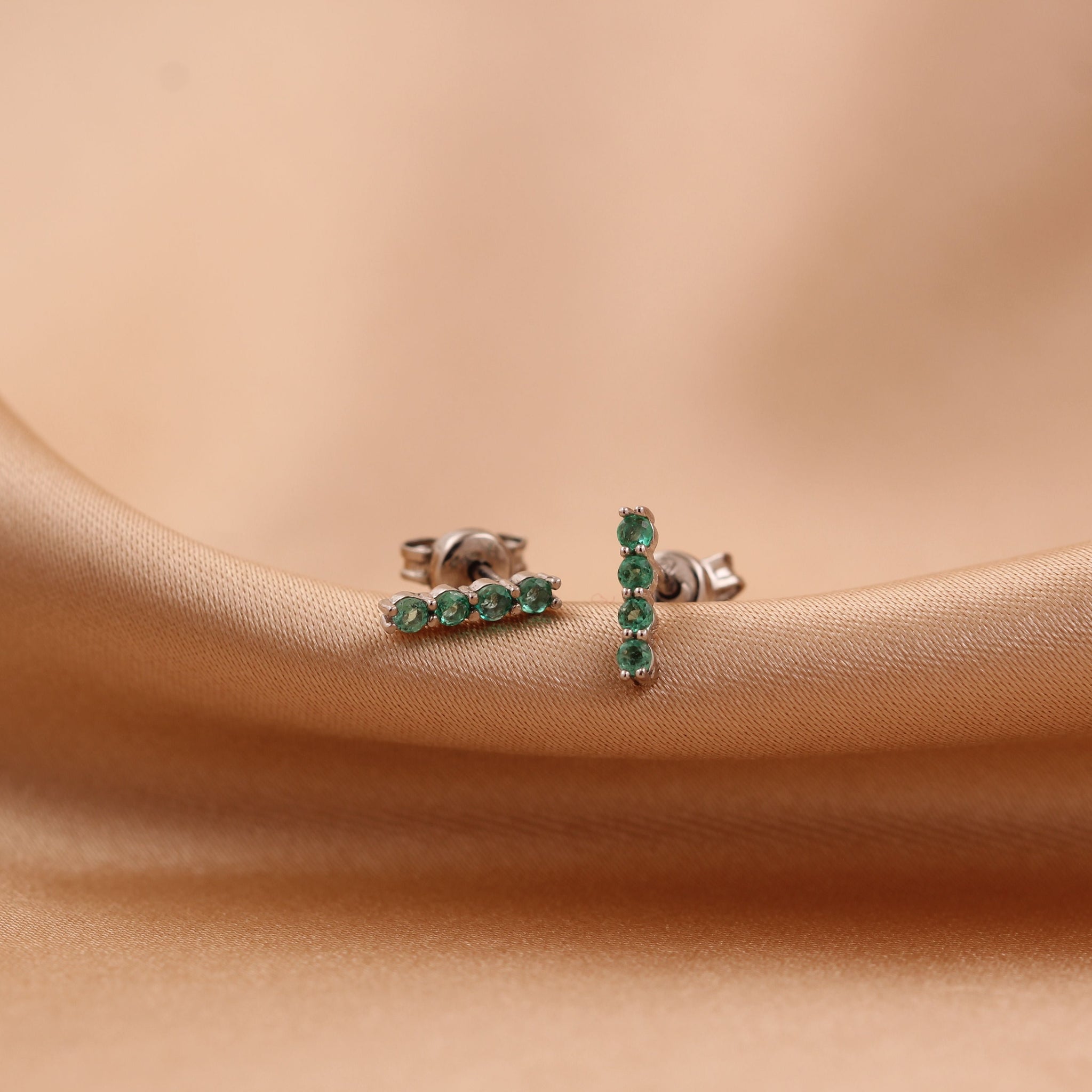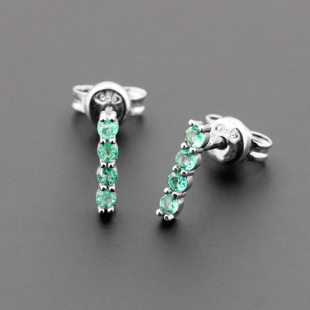 Estos aretes destacan por su elegante diseño con esmeraldas redondas, con un peso de 0.32 ct.