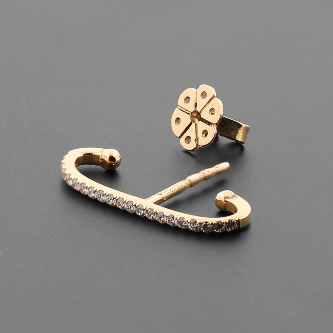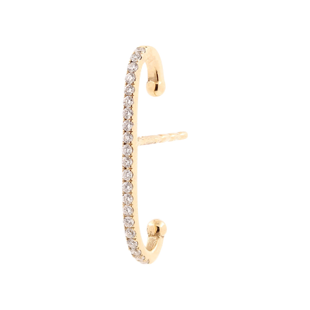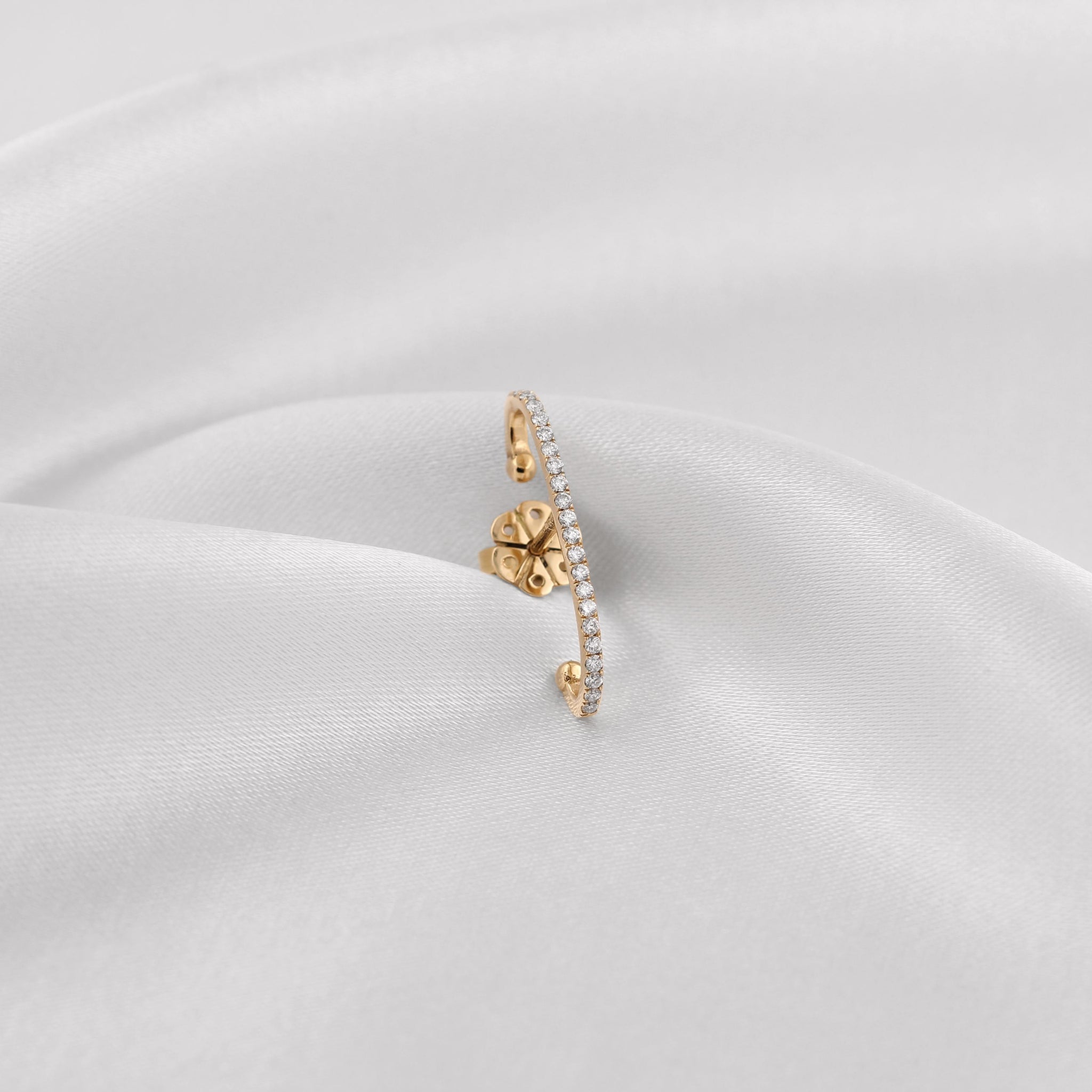 Engastados a lo largo de la pieza, diamantes de 0.15 quilates irradian un brillo sutil pero cautivador, añadiendo un destello de luz a cada movimiento. Diseñado para usarse sin necesidad de perforaciones adicionales, este earcuff combina comodidad y estilo, convirtiéndose en un accesorio versátil que puede elevar cualquier look, desde lo cotidiano hasta lo más sofisticado.
